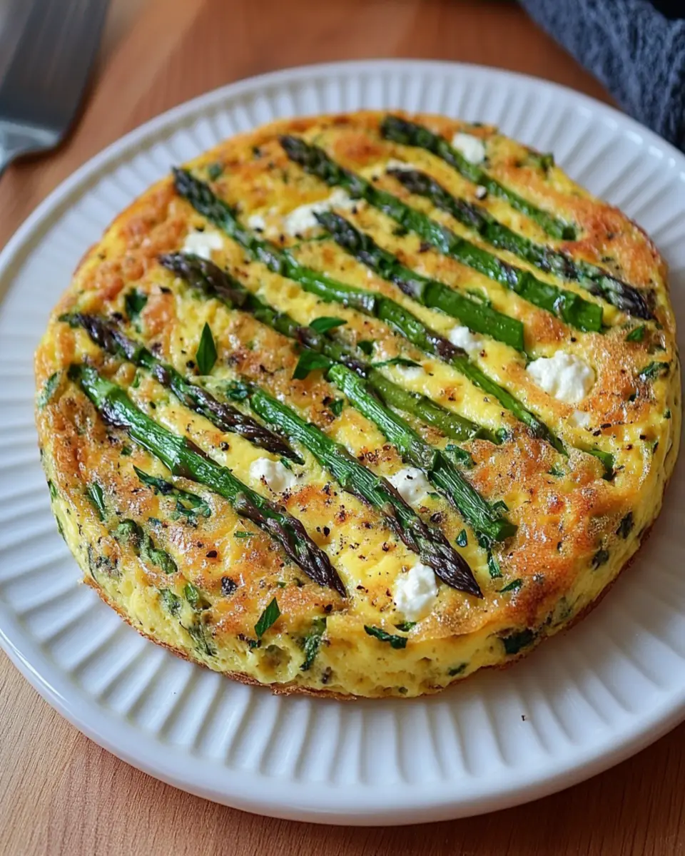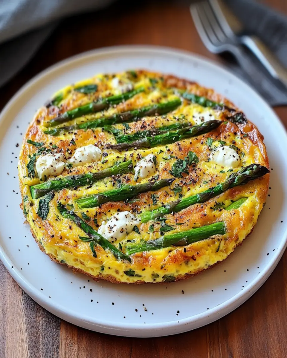 A delicious and healthy frittata featuring fresh asparagus and creamy goat cheese.