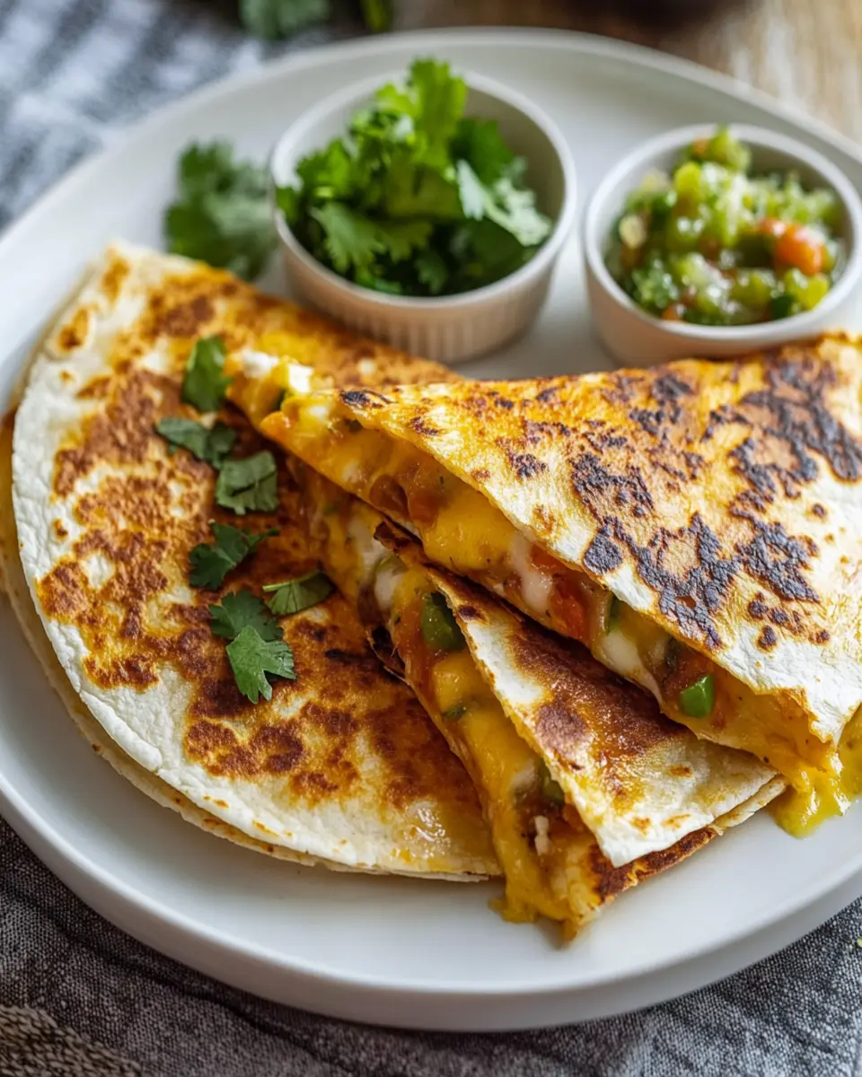 Absolutely! Cheesy quesadillas freeze well. Simply assemble and cook them, let them cool, and then wrap them tightly in plastic wrap or aluminum foil. When you’re ready to eat, just reheat in the oven or skillet until hot and crispy.