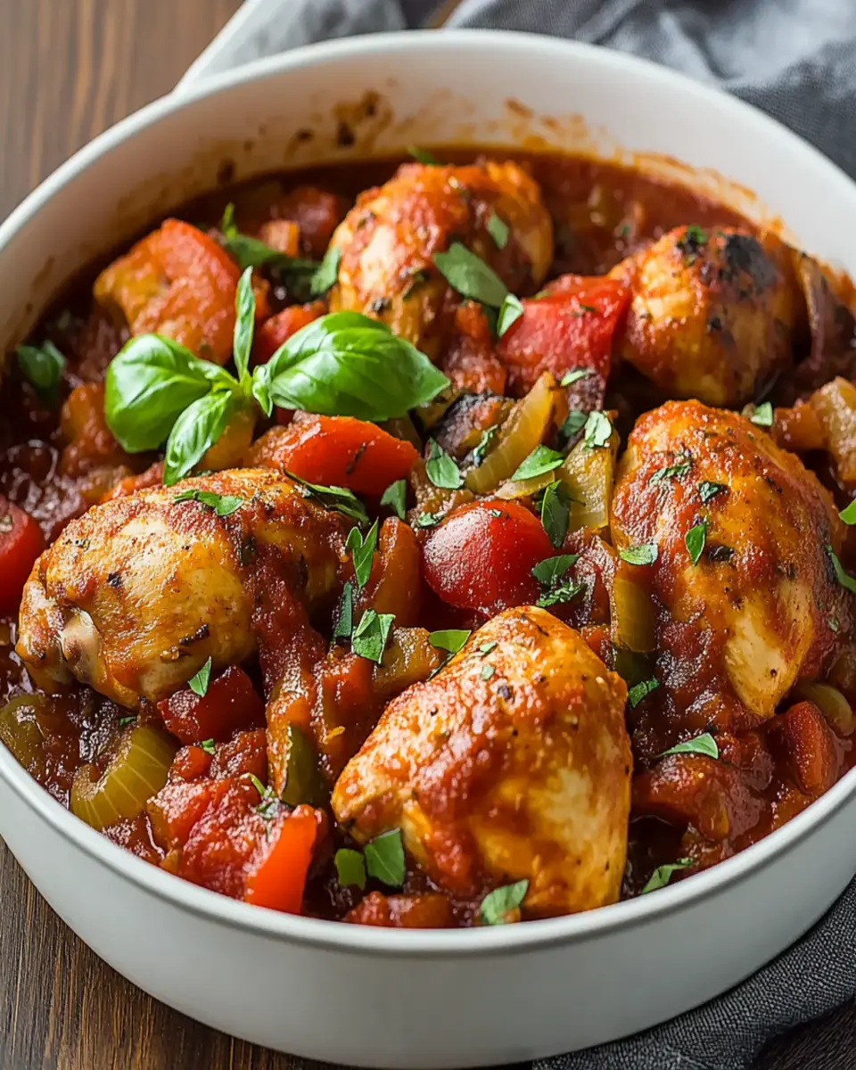Imagine coming home to a bubbling pot of chicken simmering in a savory tomato sauce, infused with the aromatic notes of garlic and herbs. This dish is incredibly versatile, allowing you to serve it over pasta or with crusty bread, making it a complete meal that satisfies any craving. Plus, it’s easily adaptable for meal prep, so you can enjoy leftovers throughout the week.