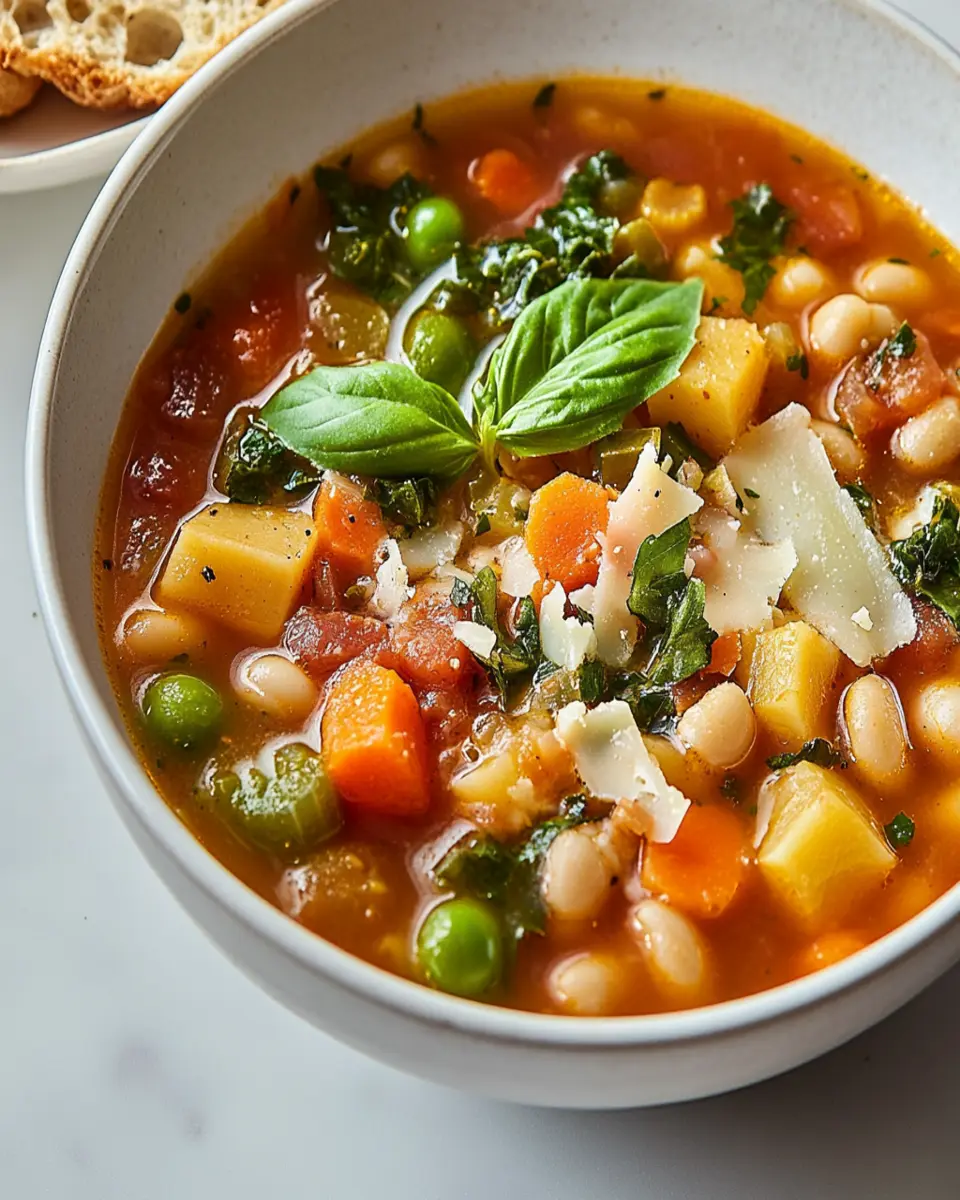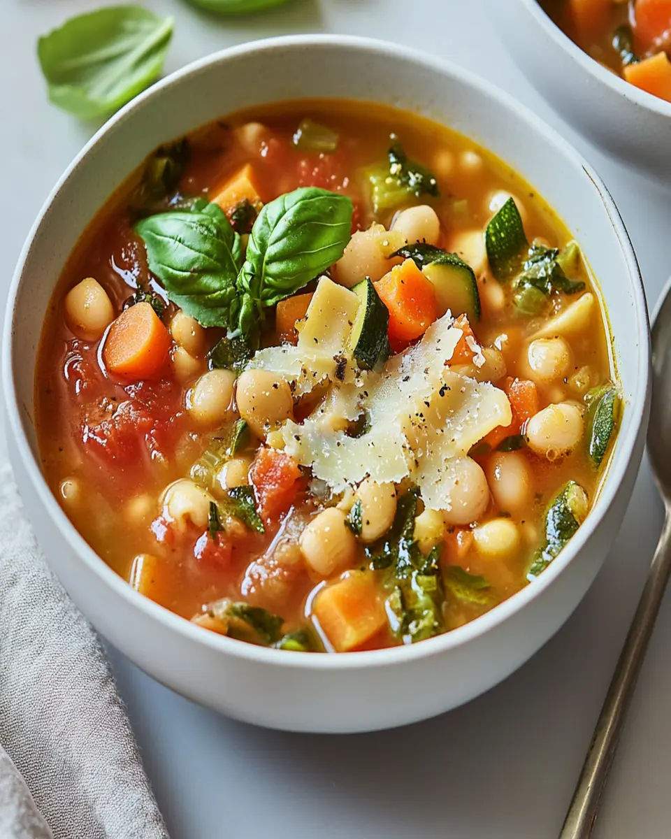 A hearty and nutritious minestrone soup packed with vegetables, beans, and pasta.