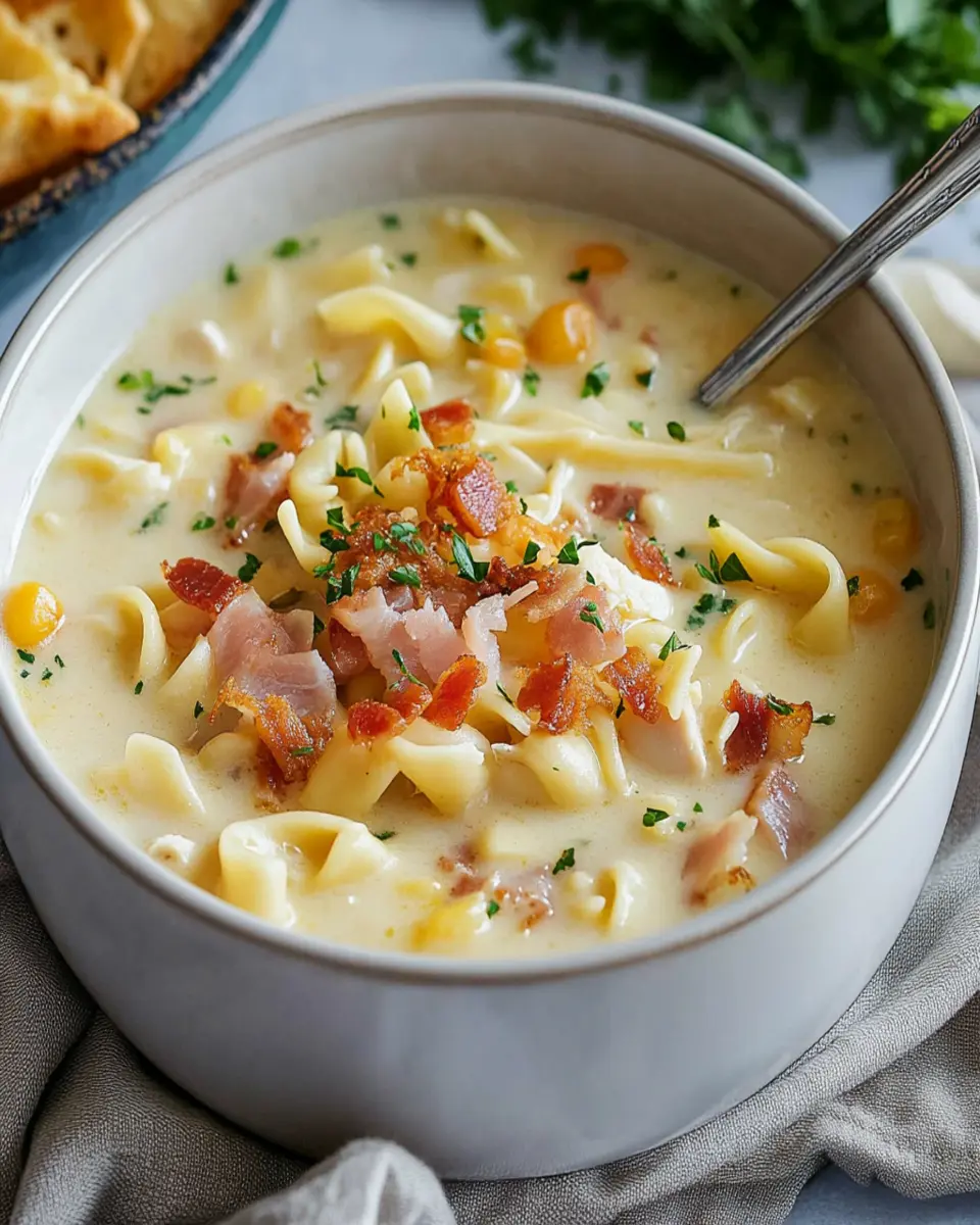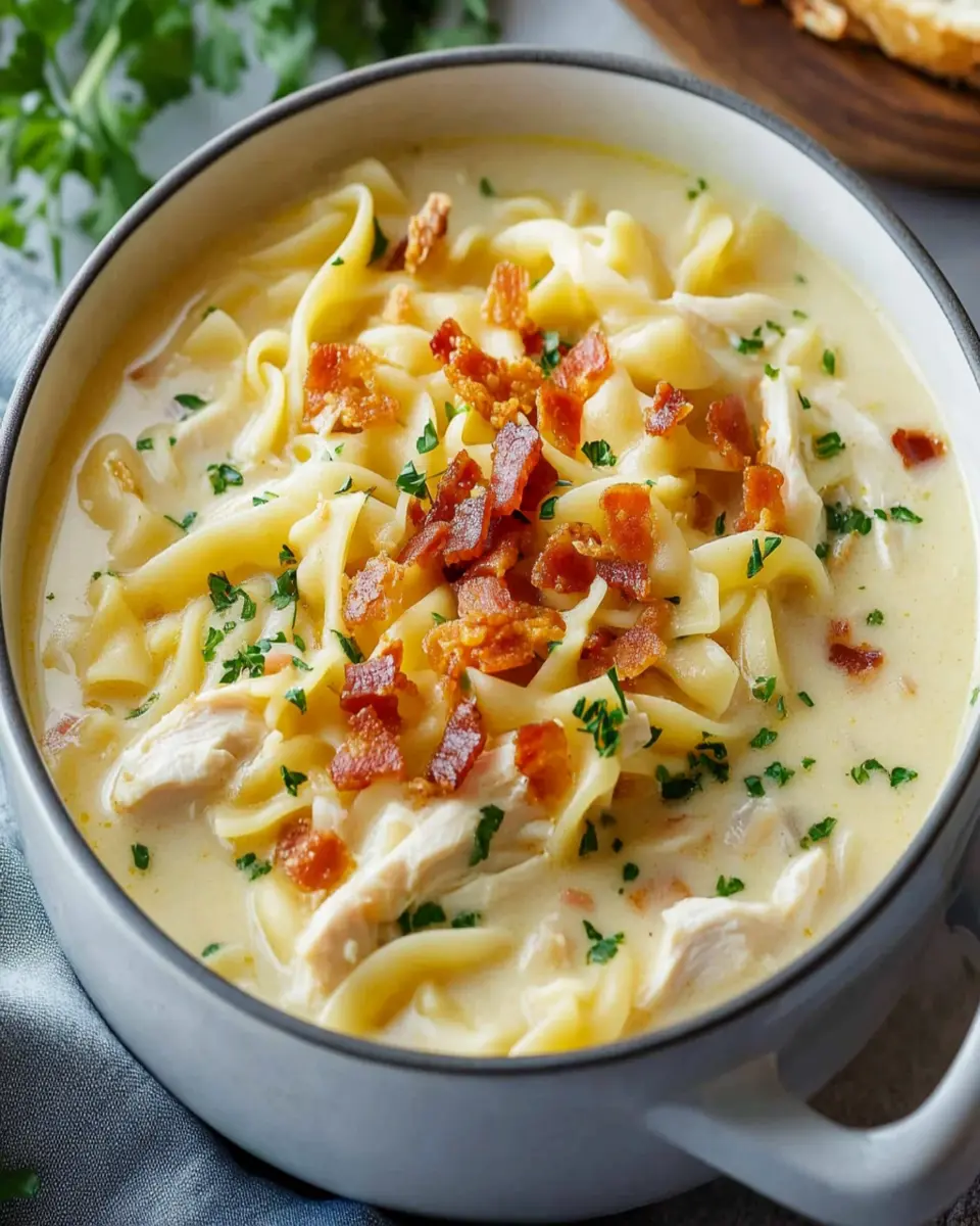 Ultimately, this creamy chicken noodle soup with pancetta is not just a meal; it’s an experience—one that invites you to savor each spoonful. Whether you’re enjoying it solo or serving it to friends, this recipe will surely become a favorite in your culinary repertoire.
