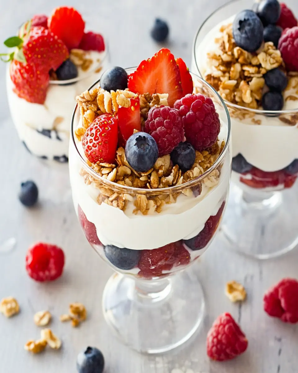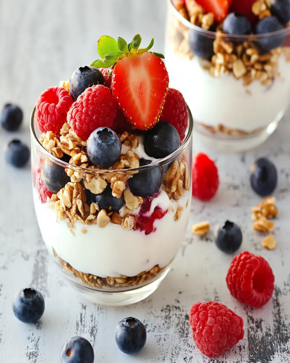 Another appealing aspect is the customization. Whether you prefer strawberries, blueberries, or a different nut, this recipe can easily be tailored to your taste. The optional drizzle of honey adds a touch of sweetness, making it a delightful treat that feels indulgent without being unhealthy. Ultimately, this Greek yogurt parfait is not just a meal; it’s a celebration of fresh, wholesome ingredients that can kickstart your day in the best way possible.