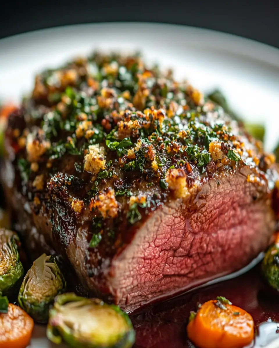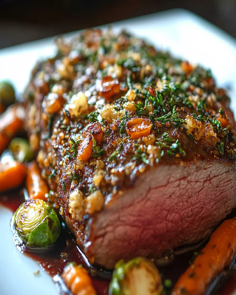 This herb-crusted beef roast is tender, juicy, and packed with flavor, making it the perfect centerpiece for any special occasion or family dinner.