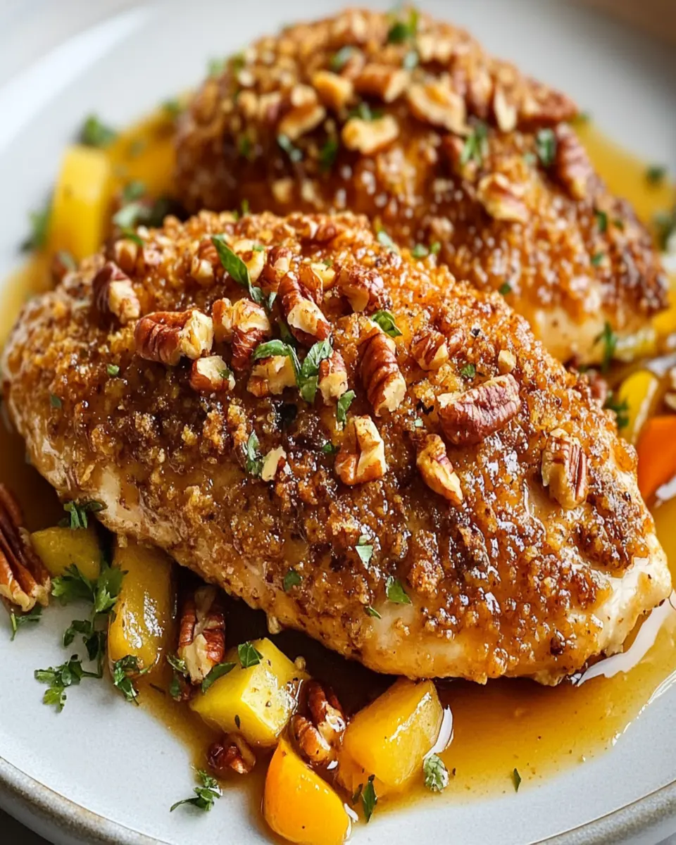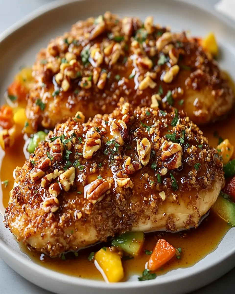Imagine the aroma wafting through your home as the chicken bakes to golden perfection, the pecan crust developing a satisfying crunch. Each bite is a perfect balance of tender chicken and nutty sweetness, making it a crowd-pleaser for any dinner table. Whether you’re cooking for a special occasion or just want to treat yourself after a long day, this dish is guaranteed to become a favorite in your recipe collection.