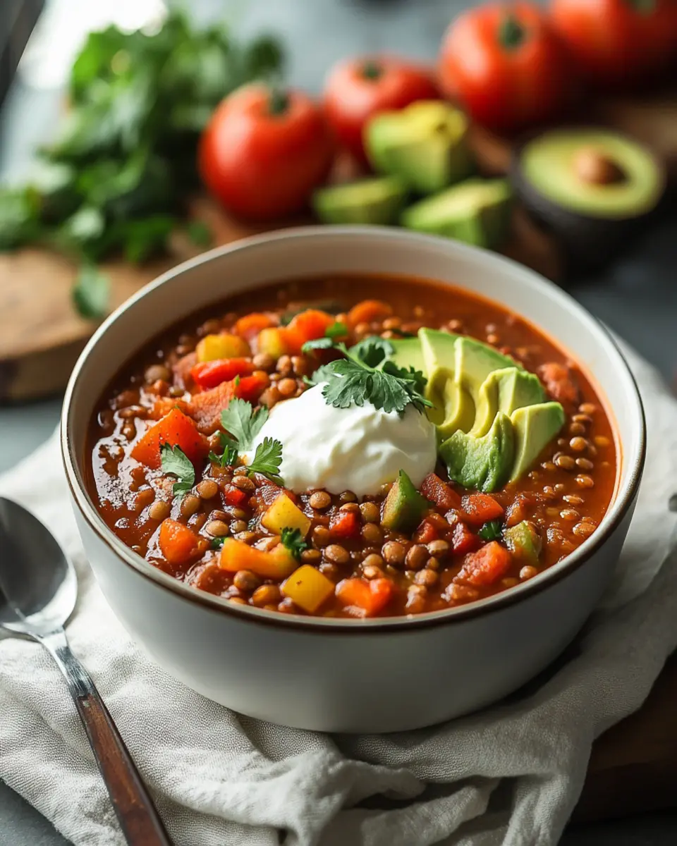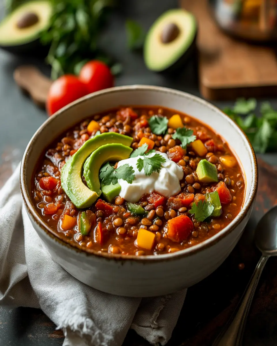In conclusion, Spicy Lentil Chili is not just a meal; it’s a celebration of flavors and nutrition. This hearty dish is perfect for young professionals seeking a quick yet satisfying option that’s easy to prepare and packed with healthy ingredients. With its rich blend of spices and wholesome components, it provides warmth and comfort in every bowl. Whether you’re enjoying it on a chilly evening or meal-prepping for the week, this chili is sure to become a favorite. Don’t hesitate to cook, save, or share this delightful recipe with friends and family!