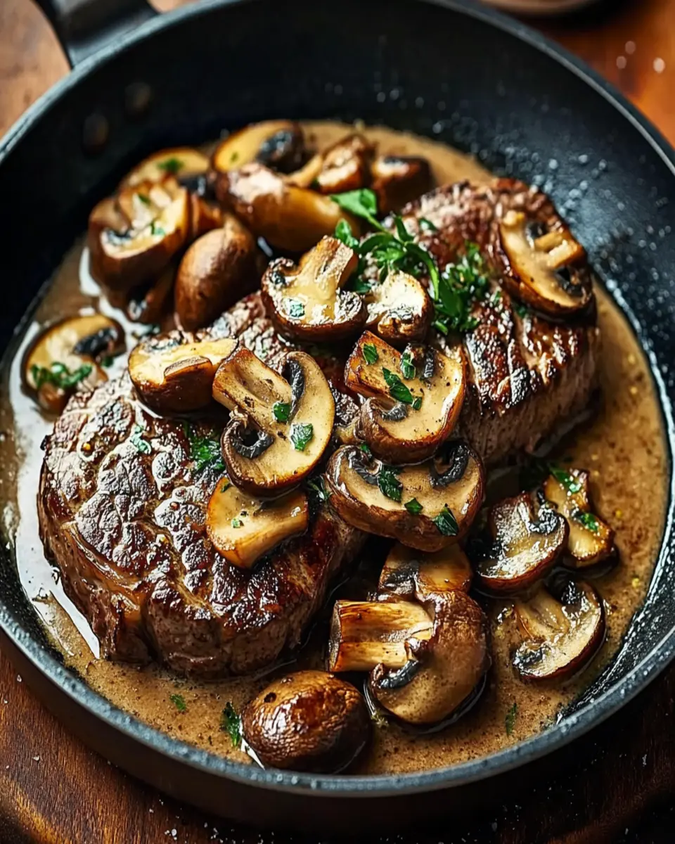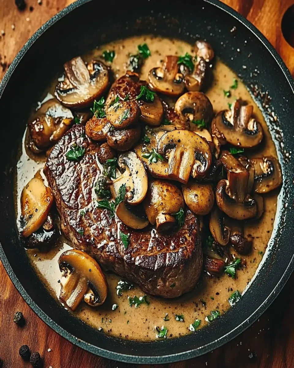 This recipe highlights the rich flavors of seared steak and sautéed mushrooms, enhanced by garlic and fresh parsley. By following the easy steps, you can create a restaurant-quality dish right at home. Don’t forget to let the steak rest for a few minutes for maximum tenderness!